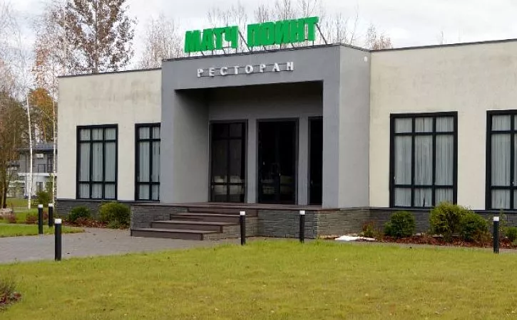 Ресторан Матч Пойнт расположен в живописном уголке с берёзовой рощей и прудом с декоративной рыбой.